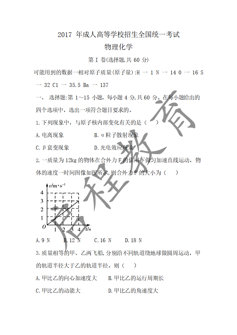 版權聲明:本文“2017年成人高考學校招生物理化學全國統一考試”來自“云南成考網”,內容來自互聯網,有關成考高起專、高起本、專升本的報名時間、入口、費用等信息內容請以云南招生考試網為準。若轉載,請注明:http://m.2258k.com/snews/509.html,若本站收錄的信息無意侵犯了版權等相關問題,請給我們致電或留言,我們會第一時間處理和回復。