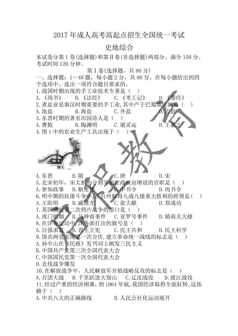版權聲明:本文“2017年成人高考高起點招生全國統一考試(文綜)”來自“云南成考網”,內容來自互聯網,有關成考高起專、高起本、專升本的報名時間、入口、費用等信息內容請以云南招生考試網為準。若轉載,請注明:http://m.2258k.com/snews/527.html,若本站收錄的信息無意侵犯了版權等相關問題,請給我們致電或留言,我們會第一時間處理和回復。
