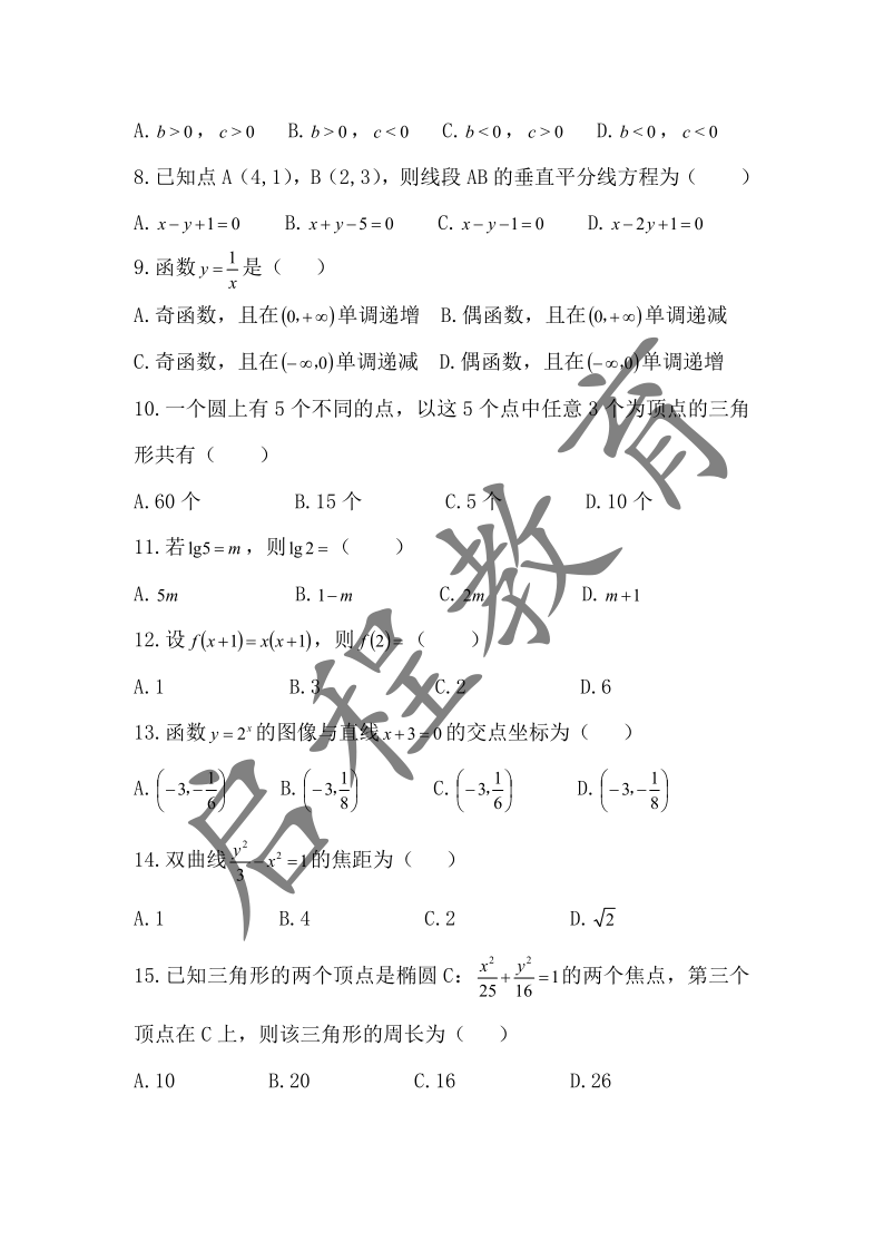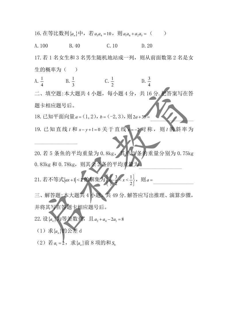 版權聲明:本文“2017年成人高考學校招生全國統一考試數學 ”來自“云南成考網”,內容來自互聯網,有關成考高起專、高起本、專升本的報名時間、入口、費用等信息內容請以云南招生考試網為準。若轉載,請注明:http://m.2258k.com/snews/607.html,若本站收錄的信息無意侵犯了版權等相關問題,請給我們致電或留言,我們會第一時間處理和回復。